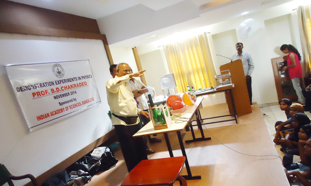 by Prof. Chakradeo, Retired Professor and Expert in experimental Physics from Mumbai at High School and PU Students level in association with Indian Academy of Science, at Seminar Hall, First Floor, VVIET